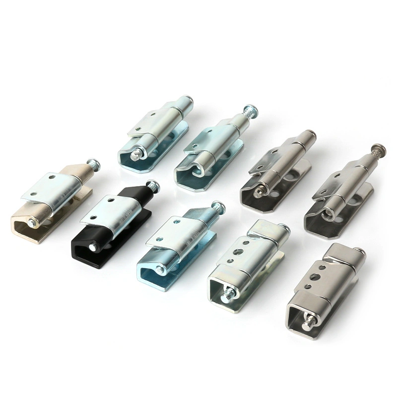 Zinek slitinové panty jsou k dispozici v černé, jasné chromové a niklové pokovování, s lesklým a opotřebeným povrchem, který splňuje průmyslové standardy. Verze Galvanized Iron má stříbrný kovový vzhled, zatímco verze z nerezové oceli 304 je kartáčována v původní barvě.