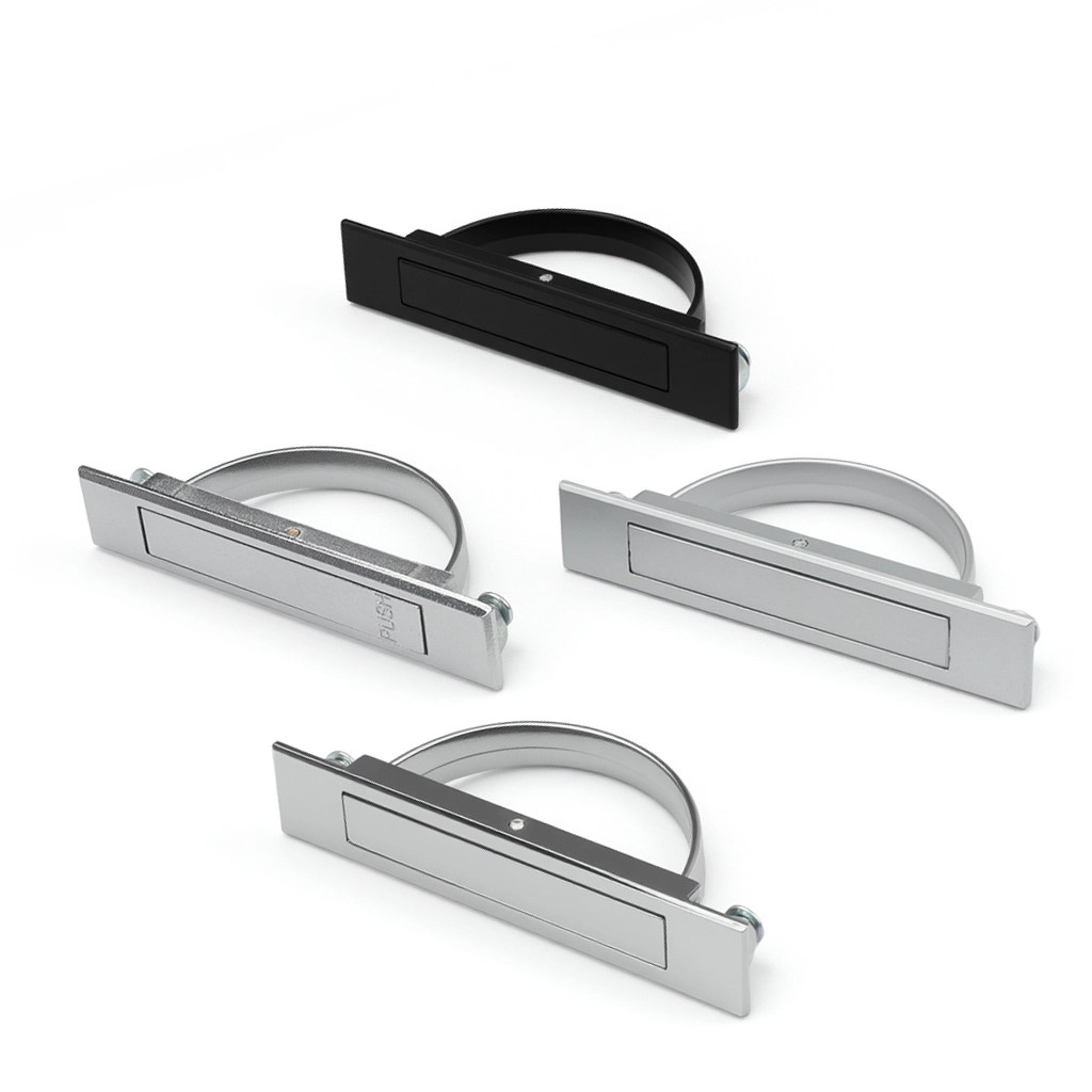 Skrytá rukojeť je vyrobena ze slitiny zinku. Je k dispozici ve čtyřech barvách: černý, matný, pískový a leštěný chrome. Tato povrchová ošetření prodlužují životnost produktu a zabraňují vyblednutí nebo loupání.