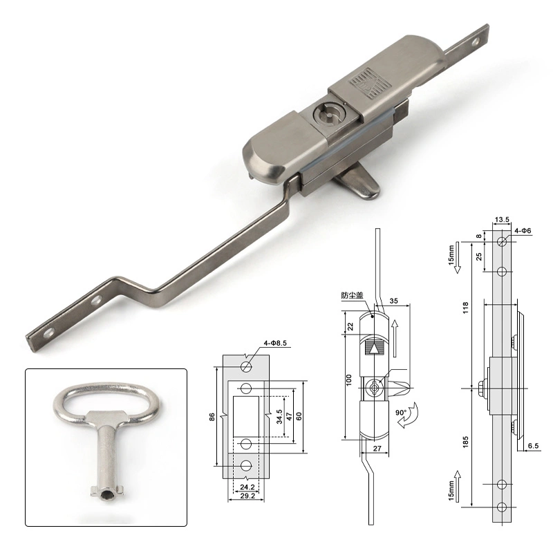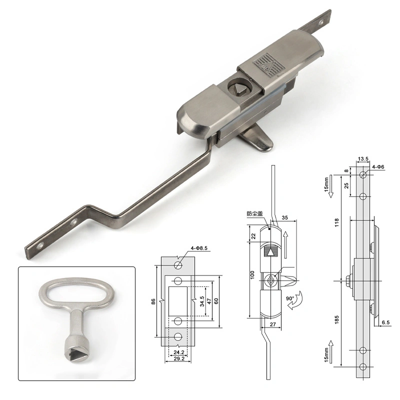 Funkcí tohoto zámku je zabezpečit dveře skříně pomocí svislého mechanismu tyče, poskytující komplexní ochranu elektrických skříní nebo serverů. Konstrukce produktu je kompatibilní s rázovými skříněmi a standardními těly skříně a instalace neovlivňuje strukturu dveří. Tělo zámku má kryt prachu pro zjednodušenou údržbu.