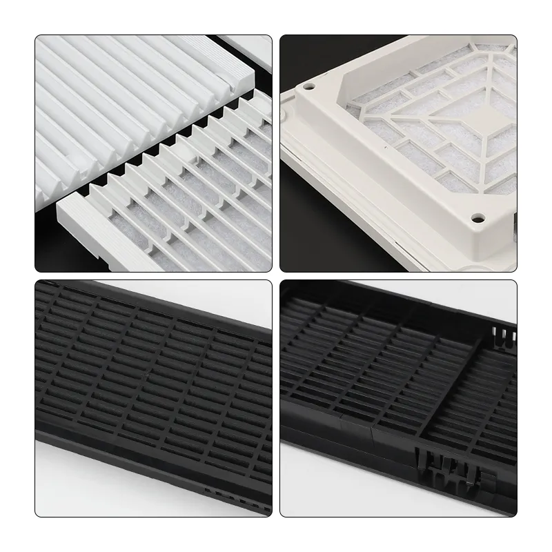 Struktura sítě a vrstva filtru umožňují ventilační mřížky účinně zabránit vstupujícím do interiéru zařízení vstupujícím do interiéru a zajistit bezpečný a normální provoz. Tento produkt, vyrobený z materiálu ABS, poskytuje vynikající odolnost proti korozi a strukturální sílu.